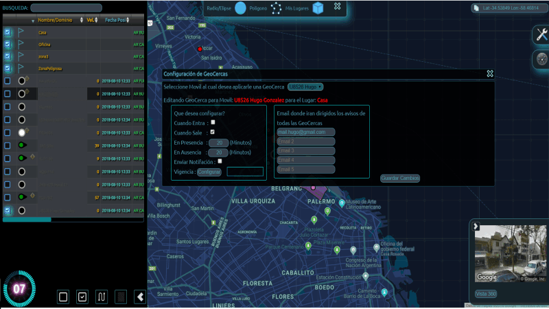 Control directo desde su teléfono móvil. Le avisará inmediatamente y en tiempo real mediante Email que recibirá en su teléfono móvil, con la posición detallada en forma de calle, nº, ciudad, etc. o mapas.